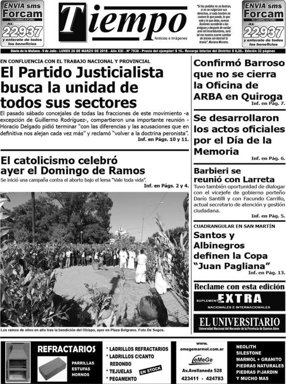 Edición impresa del día lunes 26 de marzo de 2018
