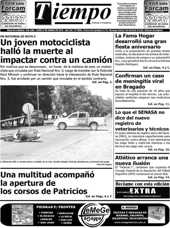 Edición impresa del día lunes 8 de enero de 2018
