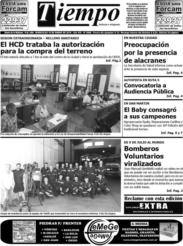 Edición impresa del día miércoles 10 de enero de 2018