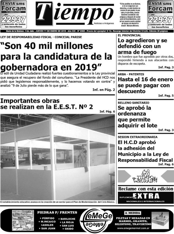 Edición impresa del día jueves 11 de enero de 2018