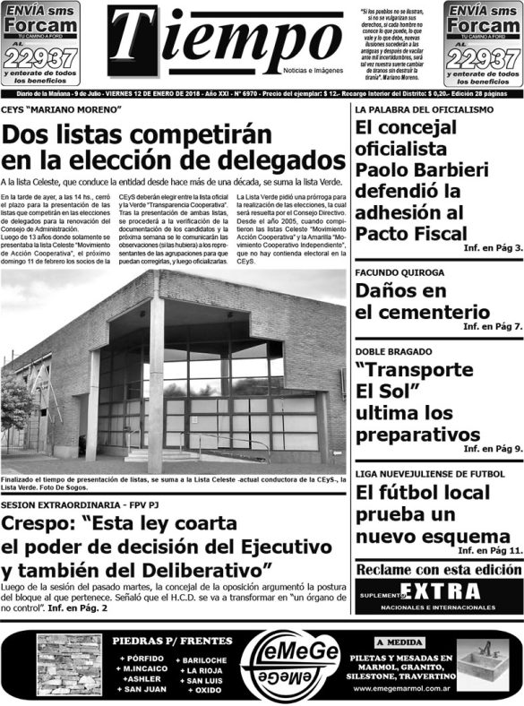 Edición impresa del día viernes 12 de enero de 2018