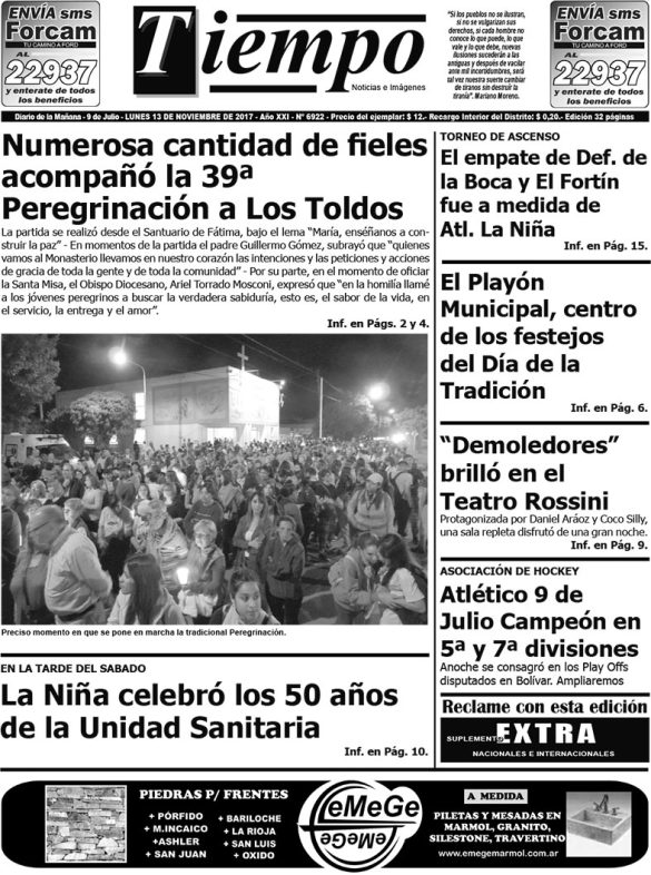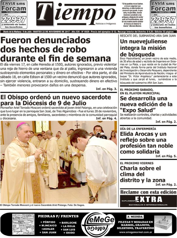Edición impresa del día miércoles 22 de noviembre de 2017