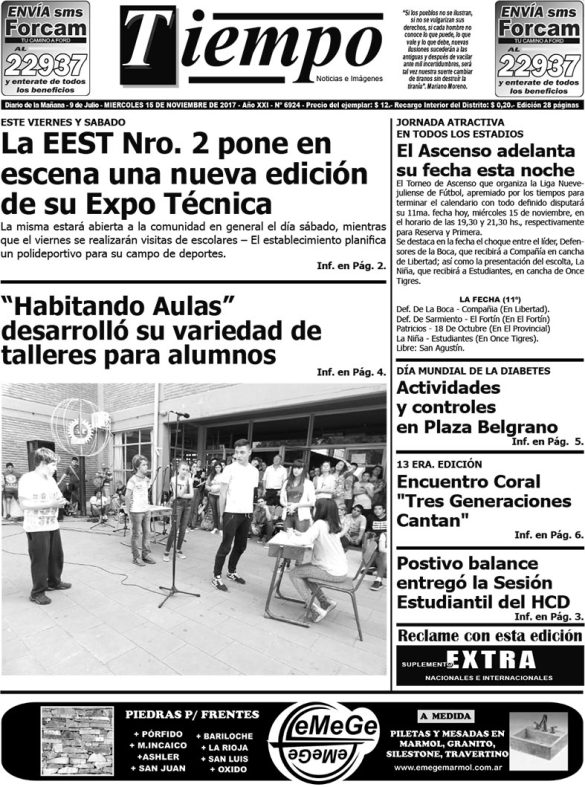 Edición impresa del día miércoles 15 de noviembre de 2017