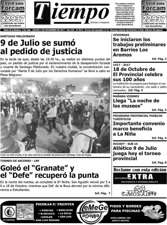 Edición impresa del día jueves 2 de noviembre de 2017