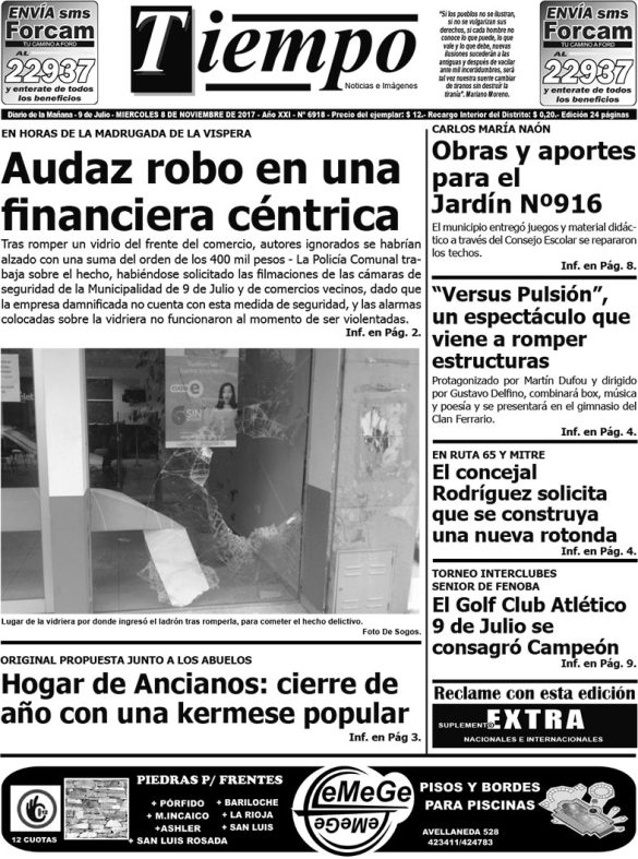 Edición impresa del día miércoles 8 de noviembre de 2017