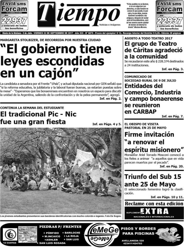 Edición impresa del día viernes 22 de septiembre de 2017