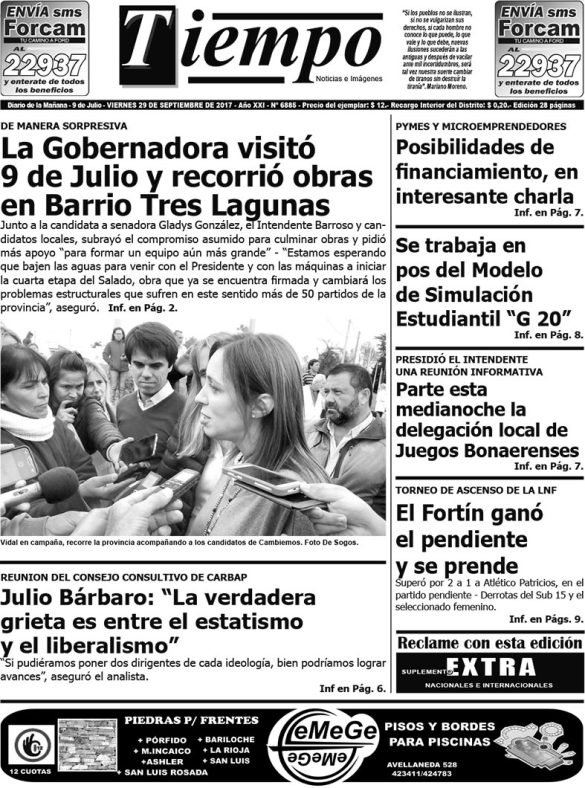 Edición impresa del día viernes 29 de septiembre de 2017