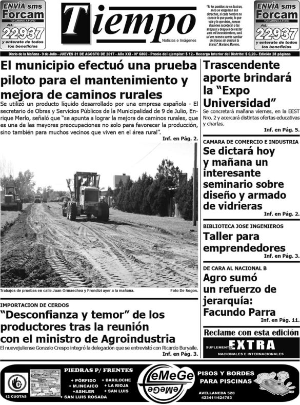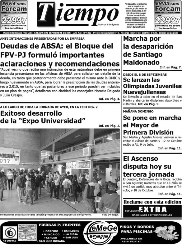 Edición impresa del día miércoles 6 de septiembre de 2017