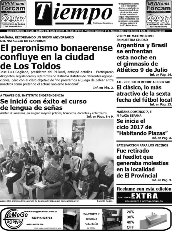 Edición impresa del día sábado 6 de mayo de 2017