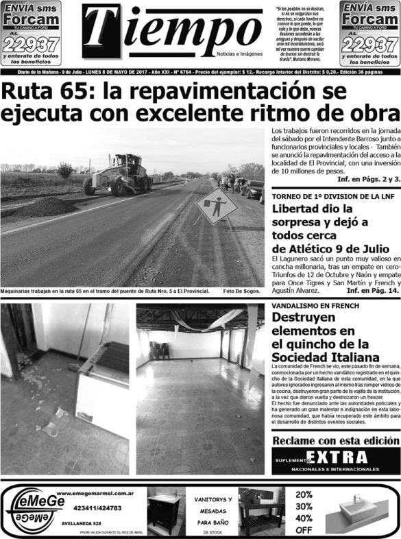 Edición impresa del día lunes 8 de mayo de 2017