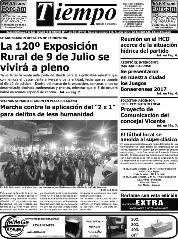 Edición impresa del día jueves 11 de mayo de 2017