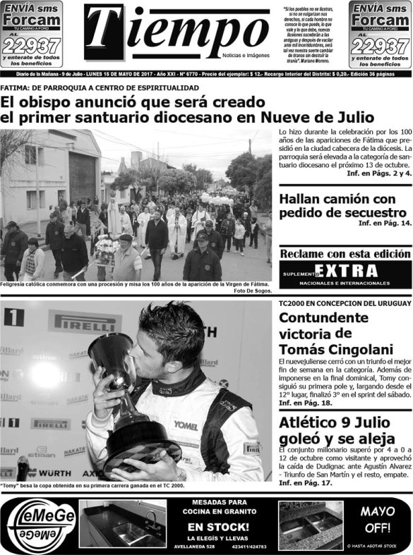 Edición impresa del día lunes 15 de mayo de 2017