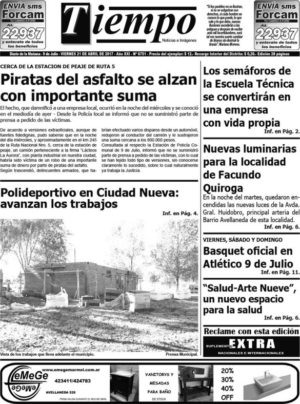 Edición impresa del día viernes 21 de abril de 2017
