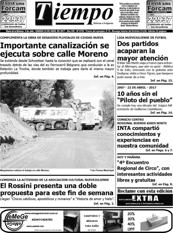 Edición impresa del día sábado 22 de abril de 2017