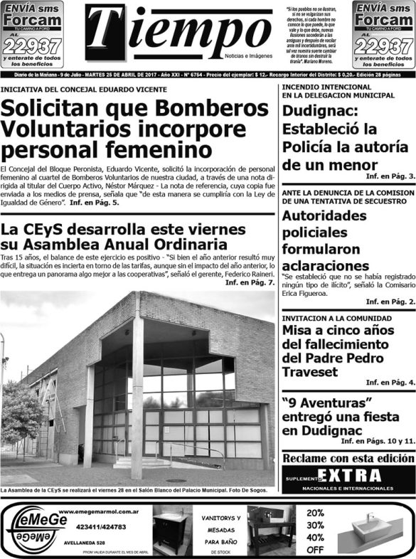 Edición impresa del día martes 25 de abril de 2017