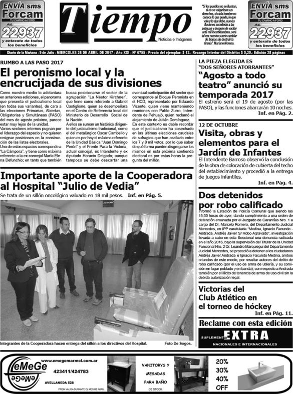 Edición impresa del día miércoles 26 de abril de 2017
