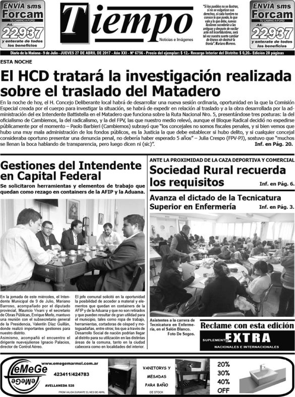 Edición impresa del día jueves 27 de abril de 2017