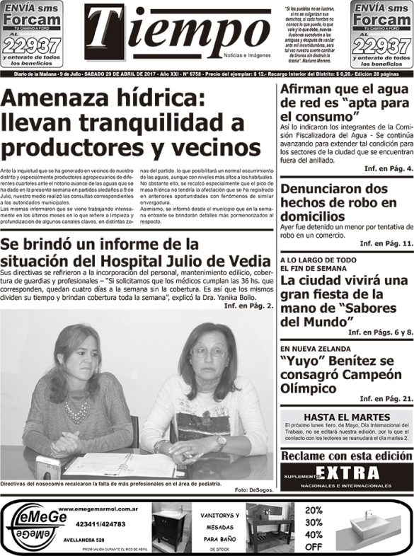 Edición impresa del día sábado 29 de abril de 2017
