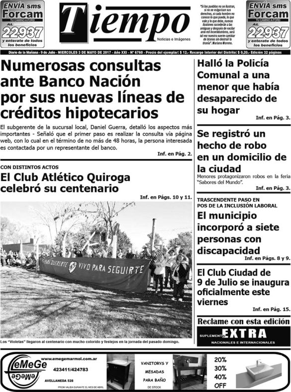 Edición impresa del día miércoles 3 de mayo de 2017