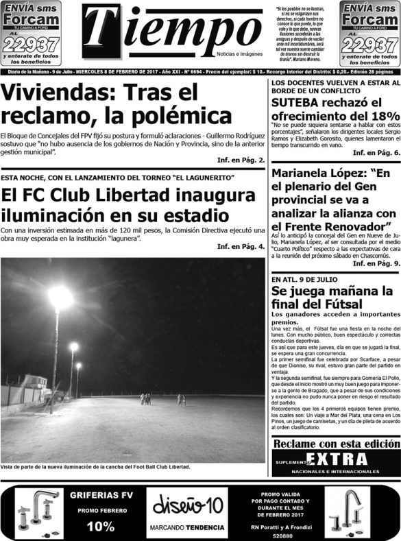 Edición impresa del día jueves 9 de febrero de 2017