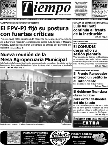 Edición impresa del día miércoles 13 de julio de 2016