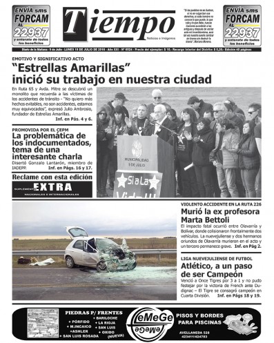 Edición impresa del día lunes 11 de julio de 2016