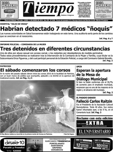 Edición impresa del día lunes 11 de enero de 2016