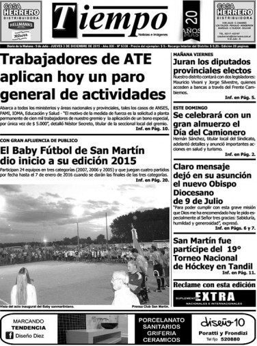 Edición impresa del día jueves 10 de diciembre de 2015