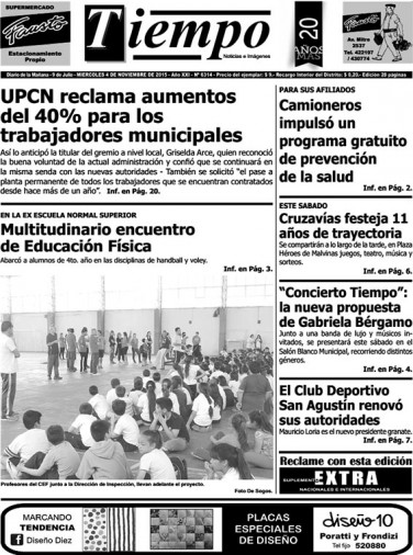 Edición impresa del día miércoles 4 de noviembre de 2015