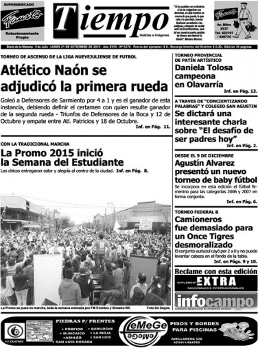 Edición impresa del día lunes 21 de septiembre de 2015