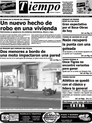 Edición impresa del día lunes 14 de septiembre de 2015