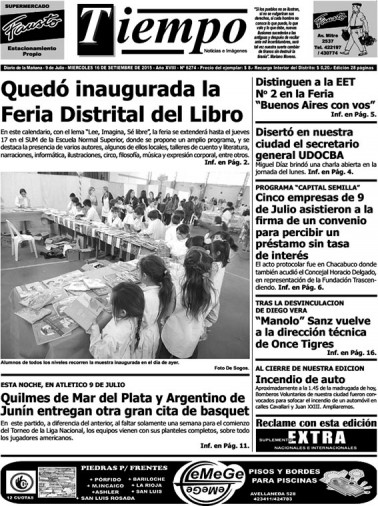 Edición impresa del día miércoles 9 de septiembre de 2015
