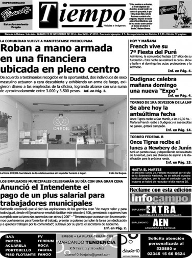Edición impresa del día sábado 22 de noviembre de 2014