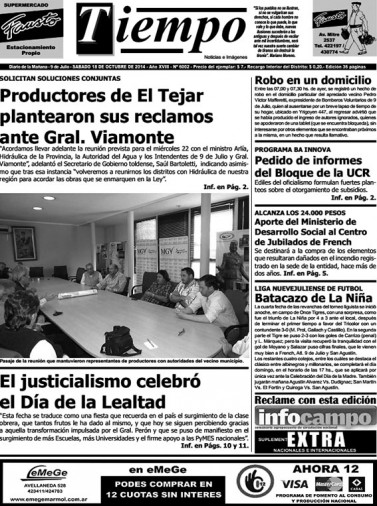 Edición impresa del día sábado 18 de octubre de 2014