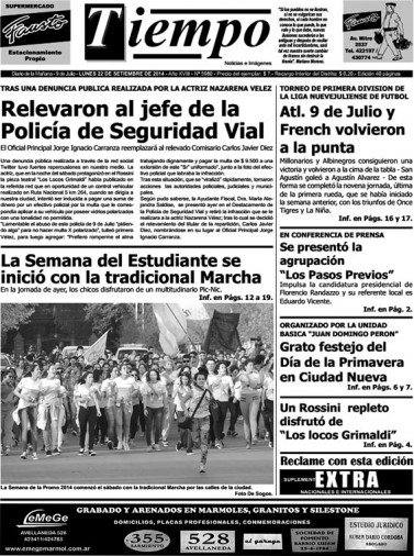 Edición impresa del día lunes 22 de septiembre de 2014