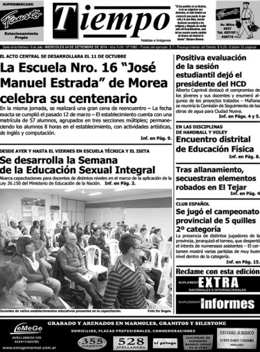 Edición impresa del día miércoles 24 de septiembre de 2014