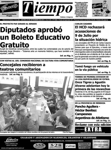 Edición impresa del día jueves 25 de septiembre de 2014