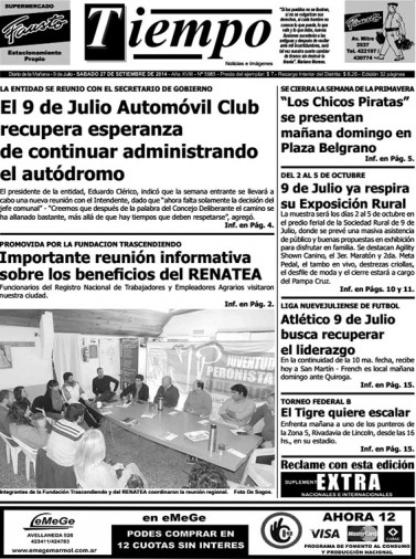 Edición impresa del día sábado 27 de septiembre de 2014