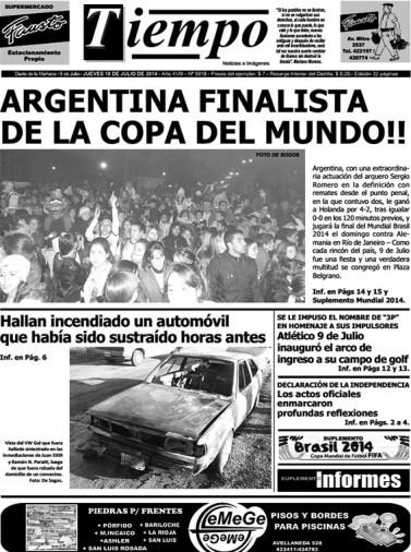 Edición impresa del día jueves 10 de julio de 2014