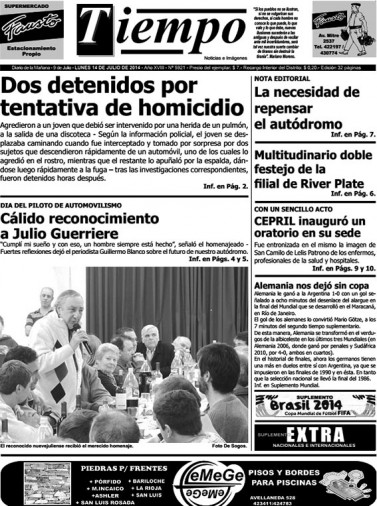 Edición impresa del día lunes 14 de julio de 2014