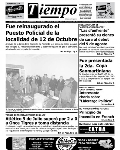 Edición impresa del día lunes 21 de julio de 2014