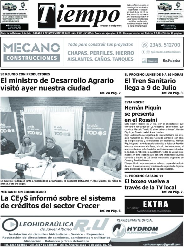 Edición impresa del día viernes 3 de septiembre de 2021