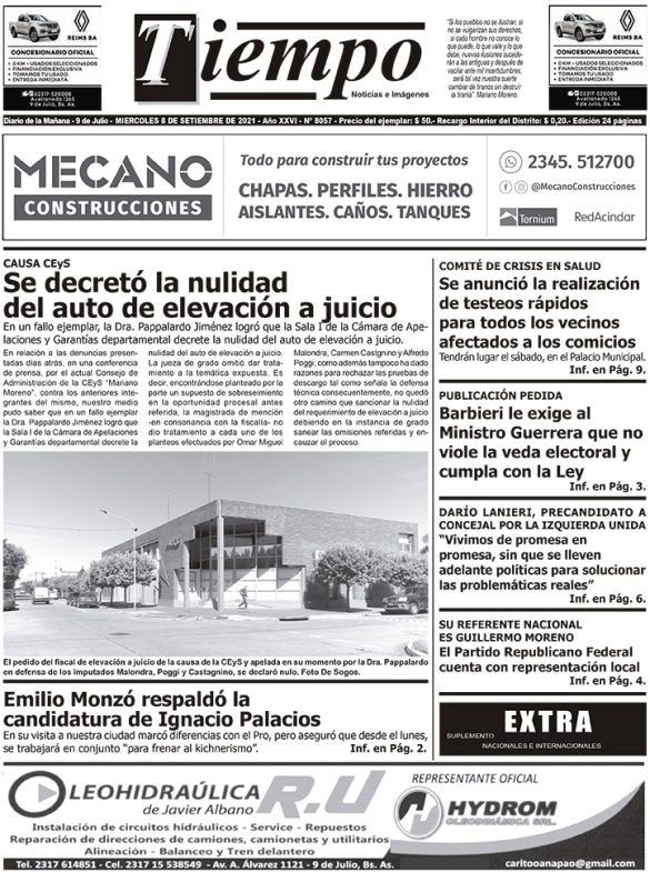 Edición impresa del día miércoles 8 de septiembre de 2021