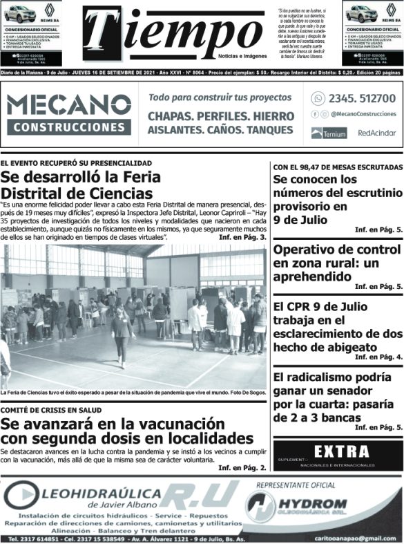 Edición impresa del día jueves 16 de septiembre de 2021