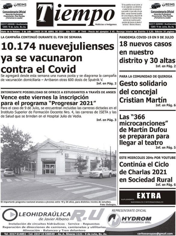 Edición impresa del día lunes 26 de abril de 2021