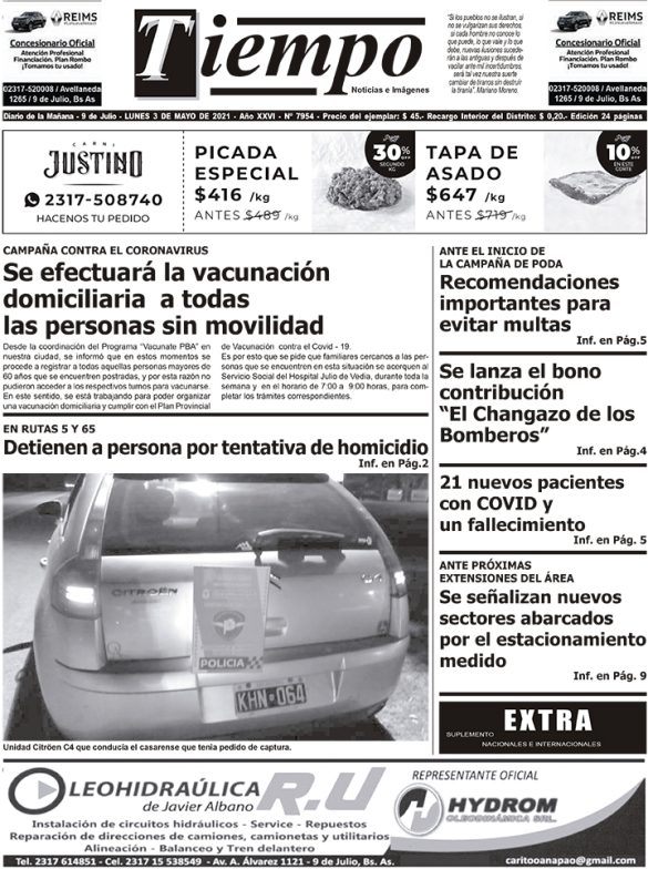 Edición impresa del día lunes 3 de mayo de 2021